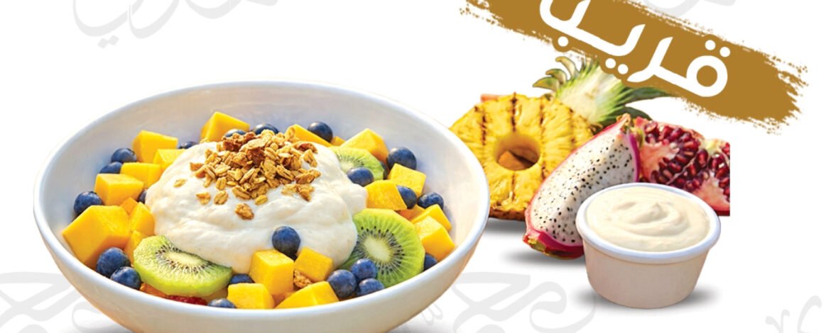 A refreshing bowl of mixed fresh fruits topped with healthy almond cream and crunchy granola.
